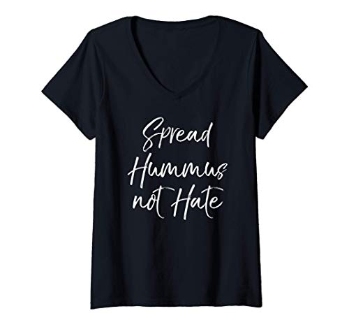 Donna Funny Vegan Joke Love & Peace Saying Spread Hummus Not Hate Maglietta con Collo a V