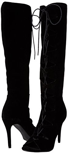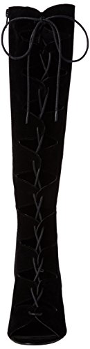Donna Ginocchio Alto Peep Toe Stiletto in Gabbia Tacchi Alti Stivali