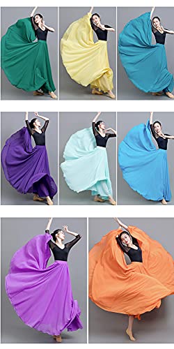 Donna Gonna da Ballo Danza del Ventre in Chiffon Doppio Strato Ruffles Gonna Performance di Danza Gonna Lunga Gonna Flamenco Grande Swing Costume Vestito Gonna,Rosso,XL