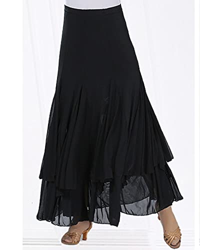 Donna Maxi Gonna in Chiffon da Ballo Danza del Ventre Performance da Allenamento Pratica da Sala Gonne Lunghe da Ballo Flamenco Rumba Grande Swing Gonna Asimmetrica Dancewear Nero M