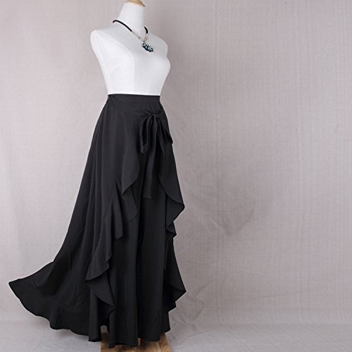 Donna Gonne Lunghe Pantalone Eleganti A Vita Alta Puro Colore Irregolare con Volant Gonna Lunga Grazioso Moda Giovane Casual Gonna Pantalone (Color: Nero, Size: L)