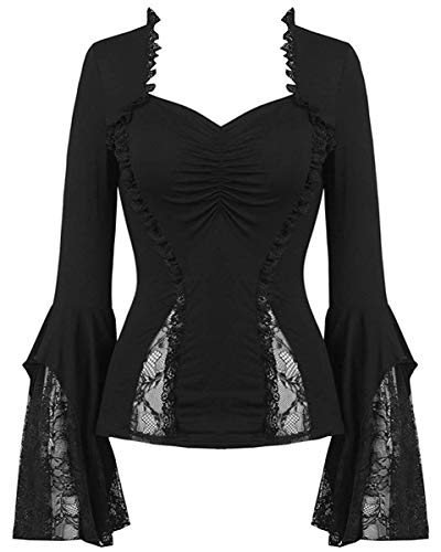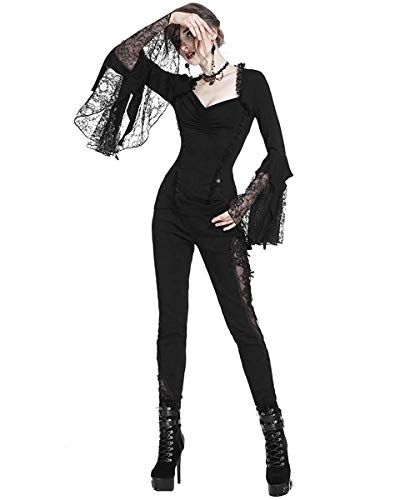 Dark In Love Donna Gothic Maglia Nera Manica Lunga Pizzo Floreale Polsino Strega Vampiro - Nero, S/M - UK Womens Size 8-10