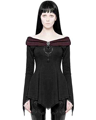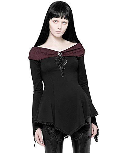 Punk Rave Donna Gothic Maglia Nera Pizzo Rosso Steampunk VTG Vittoriano Manica Lunga - Nero, M/L - UK Womens Size 10-12