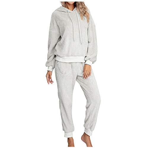 DAY8 Tute Donna Invernali Felpate Sportive Taglie Comode Tuta Donna Sportiva Completa Invernale Elegante 2 Pezzi Manica Lunga Con Tasche Cappuccio Felpa + Pantaloni (grigio, S)
