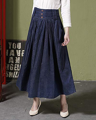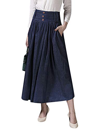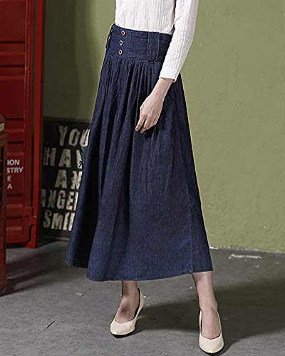 Donna Vita Alta Jeans Slim Jeans Gonna Plissettata Lungo Blu Marino S