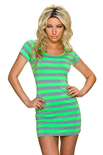 Muse Donna Jersey a Maniche Lunghe Mini Vestito Manica Corta Top | Block Strisce Ringel Design Grigio-Verde 36