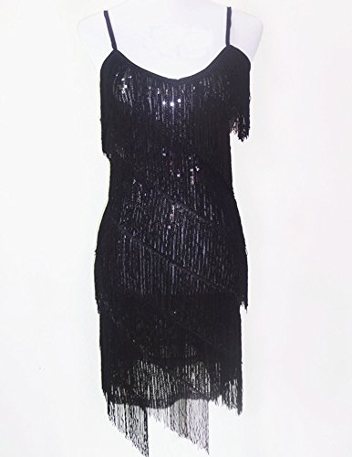 Donna Latino Vestito Salsa Abito Danza Frange Costume Scollo Rotondo Colore Puro Nero Una-Taglia