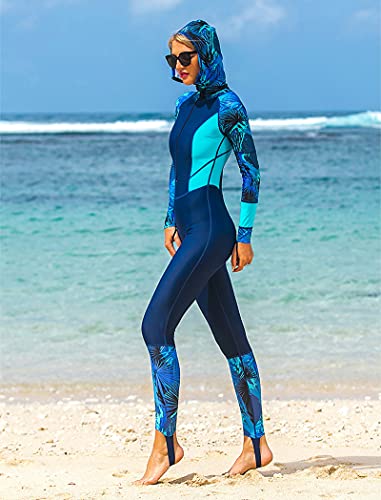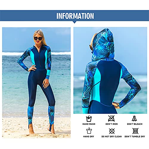 Muta da donna, lunghezza intera, ultra elasticizzata, 3 mm, in neoprene, con zip frontale a maniche lunghe con cappuccio, per immersioni, nuoto, surf, sport acquatici all'aperto, blu scuro, XL