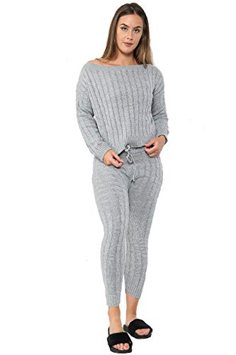 Tuta da donna in maglia 2 pezzi per abbigliamento da salotto Co ord set tuta da donna Grigio argento 40