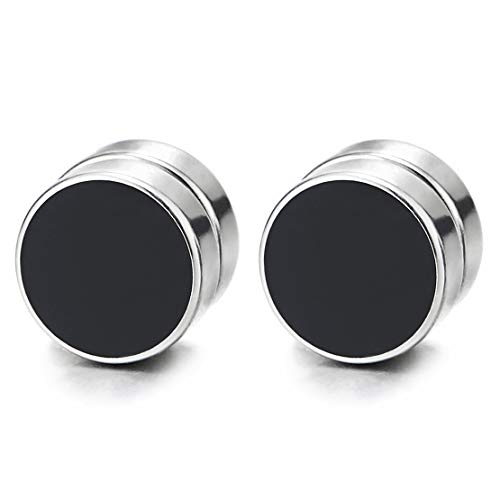 8MM Uomo Donna Magnetico Nero Cerchio Orecchini Smalto Nero, Click-on Fake Piercing, Finto Dilatatore Fake Plug, Acciaio