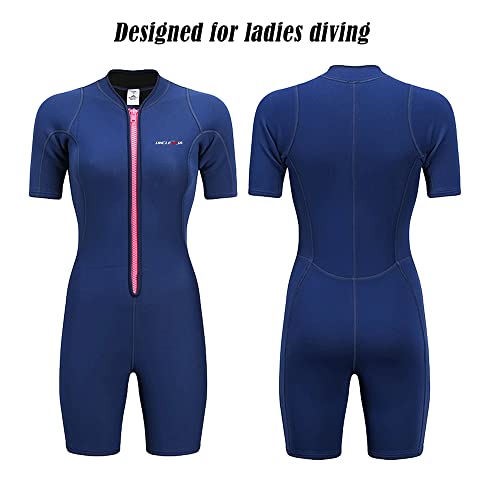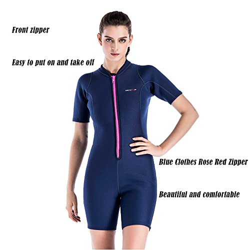 Muta da donna a maniche corte da 2 mm con zip frontale in neoprene, per immersioni, surf, nuoto, snorkeling