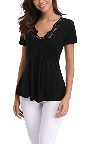 Miss Moly Top da donna a maniche corte con scollo a V, stile gipsy, maglietta estiva con ruche sulla parte anteriore Nero 14-16