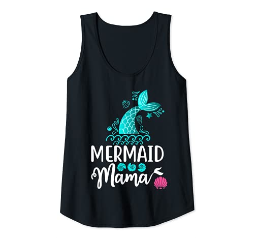 Canotta Mermaid Mama.Cute Tee sirena per compleanno ragazza mamma.Mermaid mamma camicia di compleanno che dice mama.I'm the mommy of the birthday sirena adulto anima di una sirena.Teal sirena coda camicia con design conchiglie marine, blu chiaro rosa conchiglia grafica tee shirt