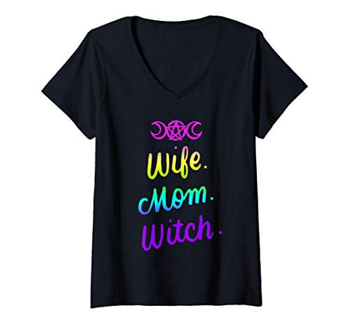 Donna Moglie Mamma Strega Divertente Halloween Donne Regali Wicca Maglietta con Collo a V