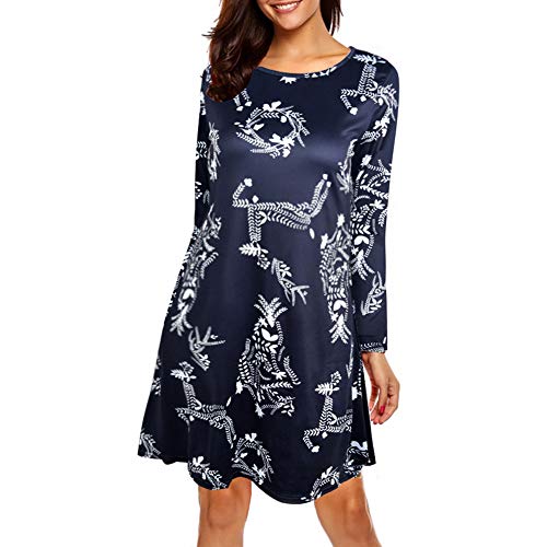 Caratteristica: Abito da donna in stile natalizio, manica lunga, stampa cartoon, girocollo