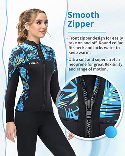 Muta top da donna, 2 mm, in neoprene, con cerniera frontale, a maniche lunghe, per immersioni, surf, snorkeling, nuoto