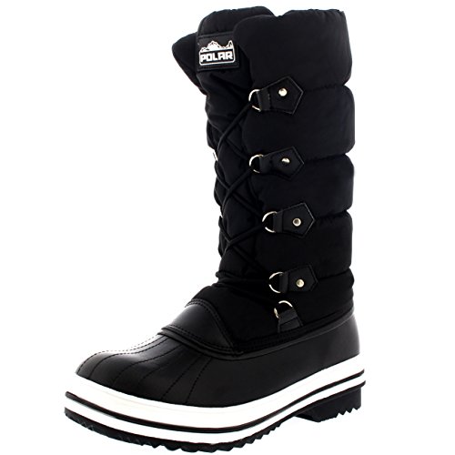 Donna Nylon Foderato di Pelliccia di Gomma Puff Trapuntato Neve Stivali - BLK40 AYC0303