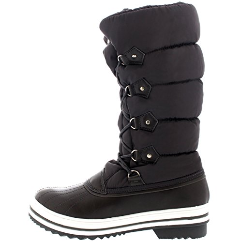Donna Nylon Foderato di Pelliccia di Gomma Puff Trapuntato Neve Stivali - GRE40 AYC0305