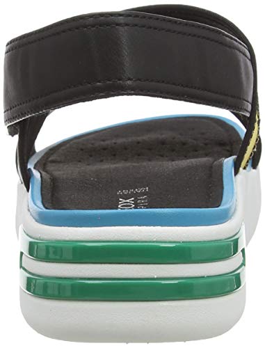 Geox Donna D Ottaya Sandal B Sandali Donna, Nero/Turchese (Black/Turquoise), 39 EU