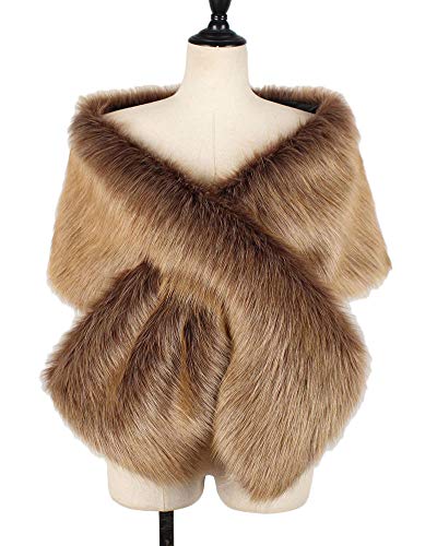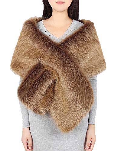 Donna Pelliccia Sintetica Sciarpe Scialle Stola Colletto Caldo Removibile Sciarpa Stole Wraps Caffè