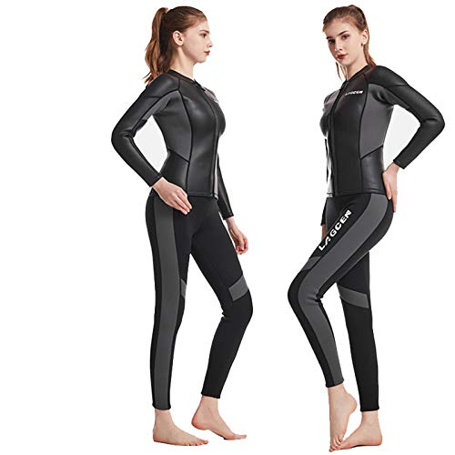 Muta Donna Surf Nera 2 Pezzi, Muta Sub Invernale Impermeabile Ultra Elasticizzata in Neoprene da 2,5mm con Zip Frontale Manica Lunga Muta Subacquea,Black-XXL