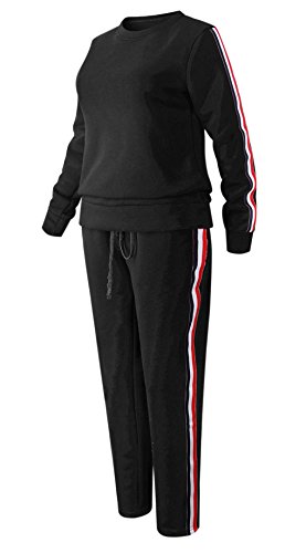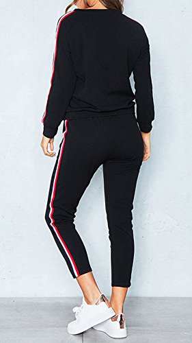 Donna 2 Pezzi a Righe Stampato Tuta da Ginnastica Jogging Sportiva Pullover Felpa Top e Pantaloni (Nero, Large)