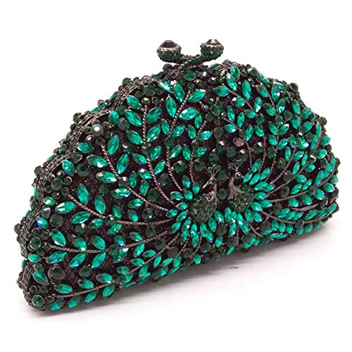 Donna Pochette Sera Strass Borse Partito Cerimonia Borsa Matrimonio Borsetta Brillantini Frizioni Elegante Clutch Pavone Verde