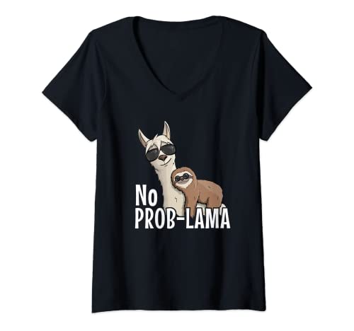 Donna No Prob-Lama Hipster Bradipo che cavalca il lama Maglietta con Collo a V