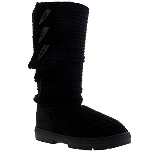 Donna Pulsante Maglia Classico Cardy Foderato Pelliccia Pioggia Stivali - BLK37 AEA0343