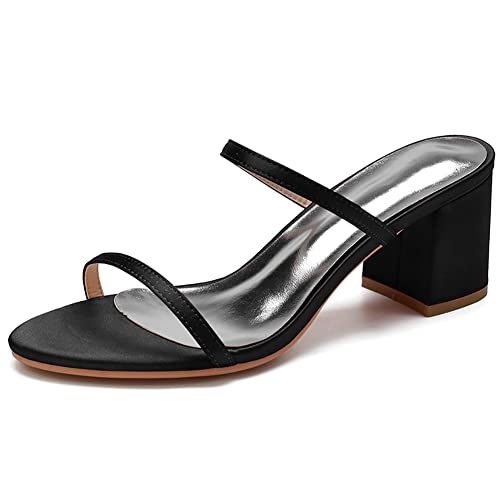 Donna Punta Aperta Cinturino in Raso Mules Sandali con Tacco Largo 6Cm CG1920-01,Nero,37 EU