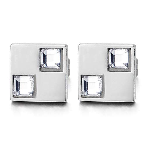 8MM Uomo Donna Quadrati Orecchini con Zirconi, Acciaio Inossidabile, Unico, 2 pezzi