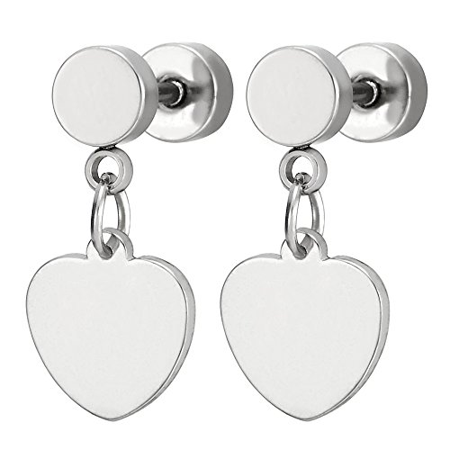 Donna Ragazze Bilanciere Cerchio Orecchini con Pendenti Cuore, Orecchini a Lobo, Acciaio Inossidabile, Riavvitare, 2