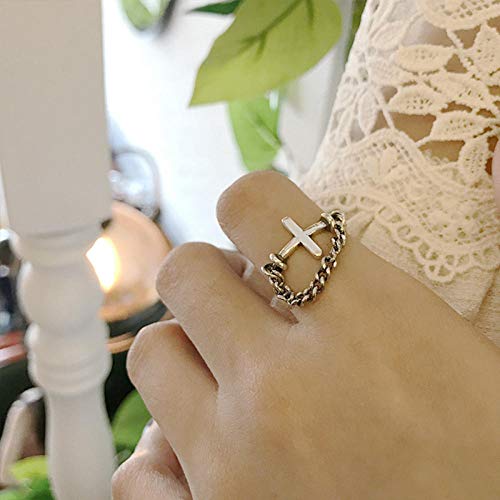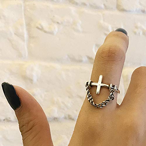 Da Donna Regolabile in Argento Sterling 925, Vento Punk Band Gothic Rock Anelli Esagerato retrò Croce Catena Anelli Aperti per Le Donne Tendenza Regolabile Gioielli Doni