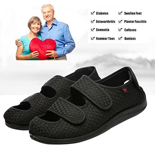 Uomo Donna Regolabile Scarpe,Con chiusura in velcro regolabile, per artrite, edema, gonfie, indoor e outdoor,Gray-black▬42