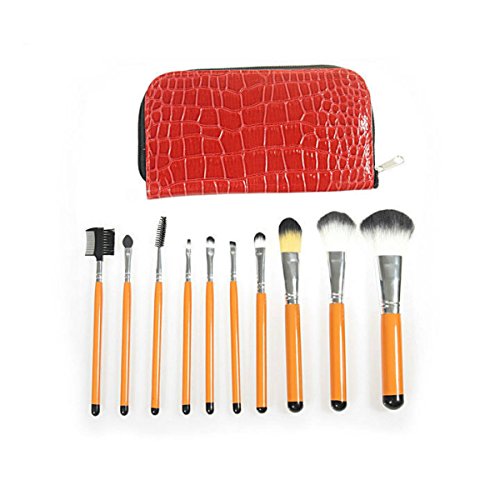 La Donna 10 Ramo Rosso Manico In Legno Tappa Lunga Spazzola Di Make-up Il Denaro Portatile Il Make-up Strumenti,Red-L