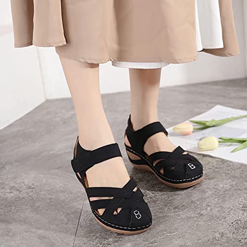 Donna Sandali Boemia Roma da Spiaggia - Ritaglio High Heels Chiuse Davanti Scarpa - Tacchi Alti da Donna Tacco a Zeppa con Piattaforma - Estate Sandalo Leggere per Casa Mare Spiaggia