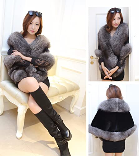 Donna Scialle Elegante Pelliccia Sintetica Coprispalle Giacca Sciarpa Wrap Cape Per Matrimonio / PartitoGrigio Nero