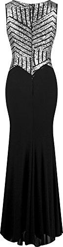 Angel-faAngel-fashions Da donna Scollo a V Sequin che borda Vestito a sirena lunga del fodero (XX-Large, multicolore (Argento, negro)