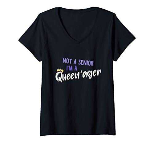 Donna Not A Senior I'm A Queenager - Old Grandma Queen Maglietta con Collo a V