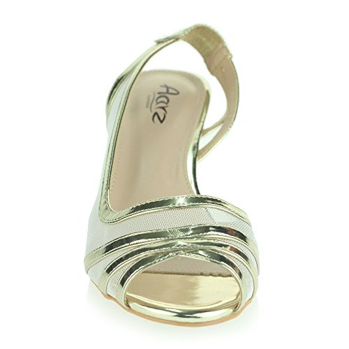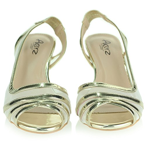 Donna Donna Serata Matrimonio Festa Del ballo Sposa Slingback Basso Gattino Tacco Peep Toe Sandali Scarpe Dimensioni