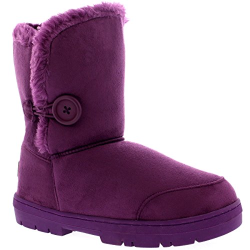 Donna Singolo Pulsante Completamente Foderato Di Pelliccia Impermeabile Inverno Neve Stivali - Porpora - 39