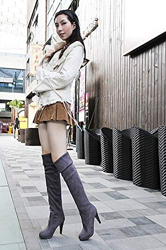 Donna Sopra La Coscia al Ginocchio Scarpe Stretch Stivali Piattaforma Tacco Alto (37, Grigio)