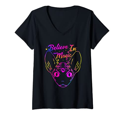 Donna Sphynx Cat Believe in Magic Magical Funny Kitty Cat Lover Maglietta con Collo a V