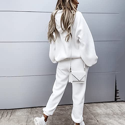 DAY8 Tuta Donna Sportiva Completa Felpate Tute Donna Eleganti Taglie Forti Invernali 2 Pezzi Felpa con Cappuccio + Pantaloni Set Sportive Casual Fitness Ginnastica Jogging Palestra (Bianco, S)