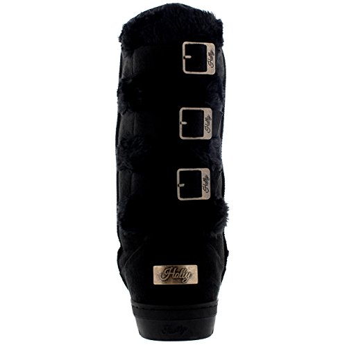 Donna Stivali di Pelliccia Three Buckle Back Impermeabile Inverno La Neve Stivali - Nero/Nero Pelliccia - UK6/EU39 - BA0474