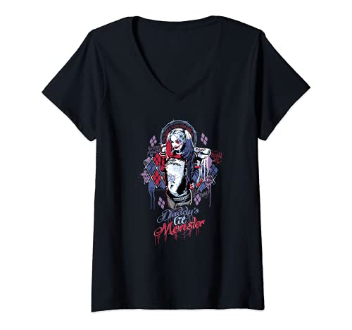 Donna Suicide Squad Harley Quinn Bad Girl Maglietta con Collo a V