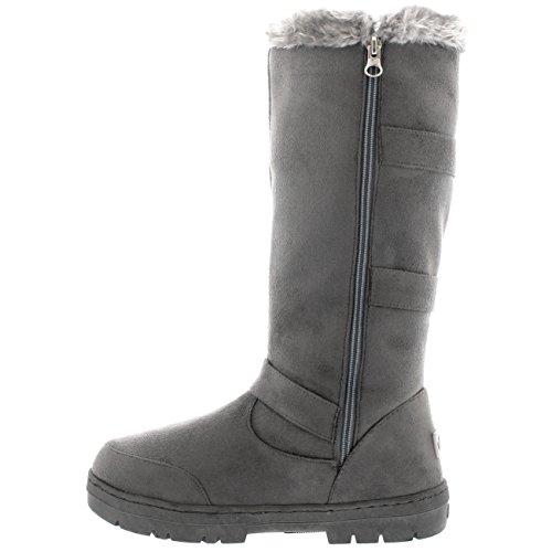 Donna Alto Three Buckle Foderato di Pelliccia Impermeabile Inverno Pioggia La Neve Stivali Interna - Grigio - UK4/EU37 - BA0472