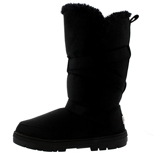 Donna Tripletta Fibbia Alto Completamente Foderato di Pelliccia Impermeabile Inverno Pioggia Neve Stivali - Nero - 38