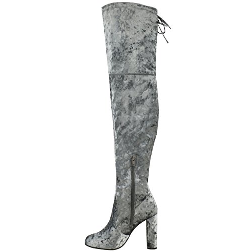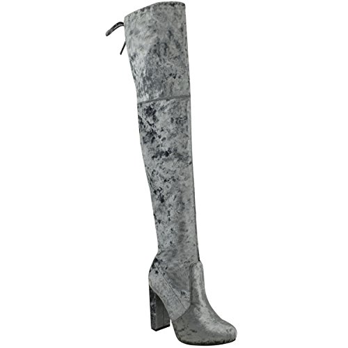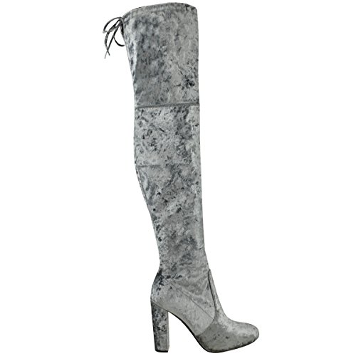 Donna Velluto Aderenti, Alti sopra al Ginocchio Elasticizzato Tacco Largo Stivali Numero - Grigio Velluto spiegazzato, 41