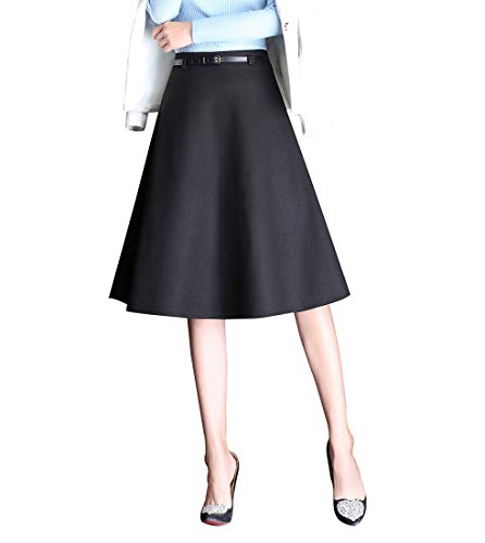 Donna Vintage Elegante Gonna Lana Vita Alta Gonne Midi Ragazza Moda Slim A-Linea Inverno Autunno Caldo Lunga Gonna Plissettata (4XL, Nero)